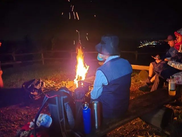 Am 27. August um 1 Uhr startete die Pilgerreise in der evangelischen Kirche mit einer Vorstellungsrunde und einem Gebet. Erstes Ziel, der Fünfländerblick. Kreuz und quer ging es durch den Wald, unterstützt durch Stirnlampen. Der Mond und die Sterne versteckten sich hinter einer dicken Wolkendecke, aber alle waren froh, dass es trocken blieb.