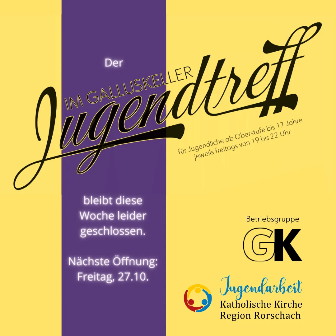 Der Jugendtreff im Galluskeller bleibt diese Woche leider geschlossen.