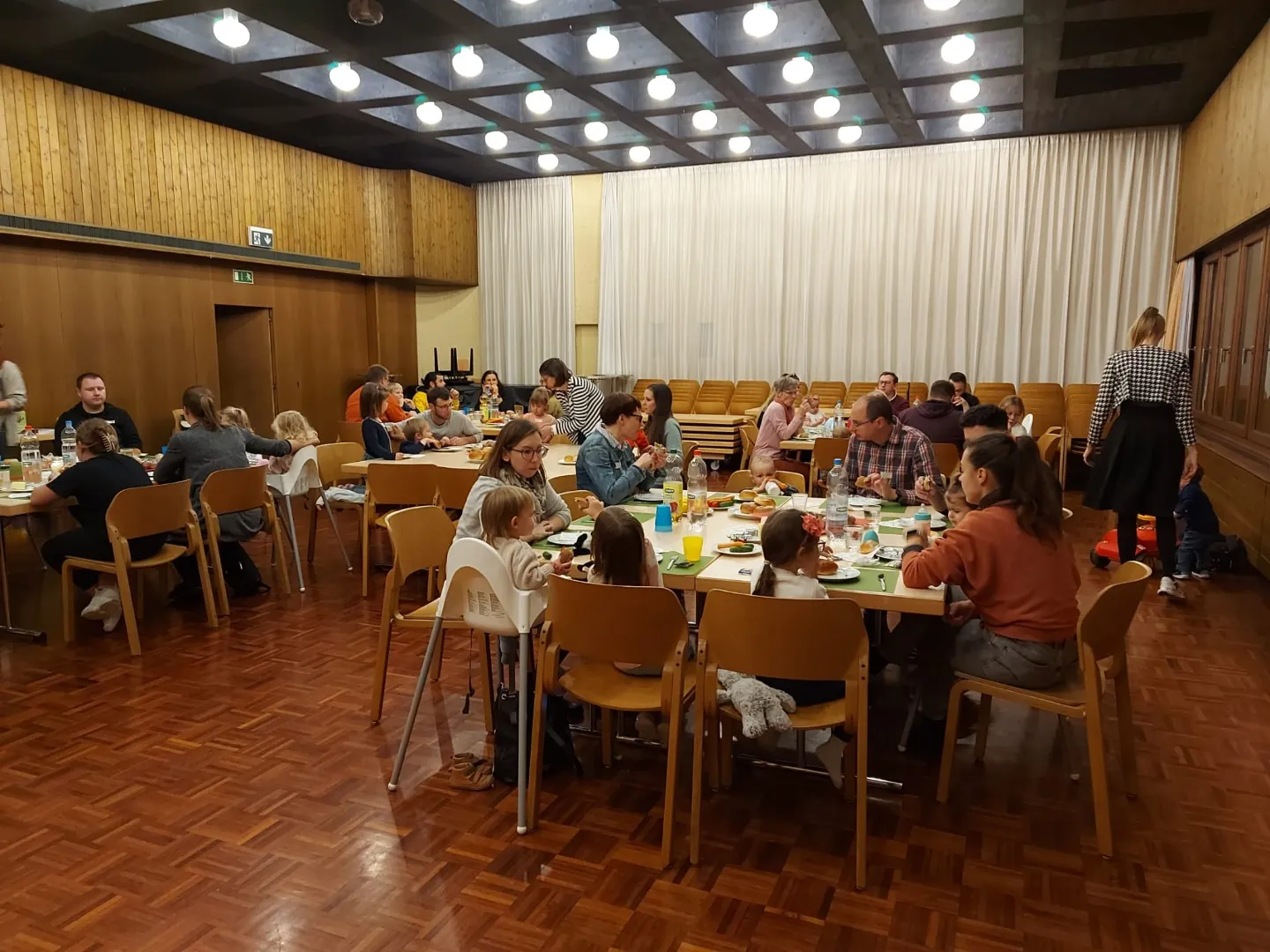Bei der Gutenachtgeschichte vergangenen Freitag, 3.11.2023, hörten nicht nur Kinder und Eltern zu. Nein, dieses Mal auch eine ganze Menge Kuscheltiere. Diese wurden anschliessend getauft, genauso wie Ben aus der Geschichte es mit seinem Teddy machte. Nasses Fell und Badewanne inklusive. Sogar Globi war dabei! Nach dem Kuscheldeckengebet freuten sich 90 leuchtende Augen auf ein gemeinsames Beisammensein. Die Eltern genossen den Austausch und die Rückgabe der selbstgestalteten Taufbirnen und die Kinder das Rennen auf der Bühne, Spielen mit Legosteinen und die Bobbycarfahrt durch den Saal des Pfarreiheims.