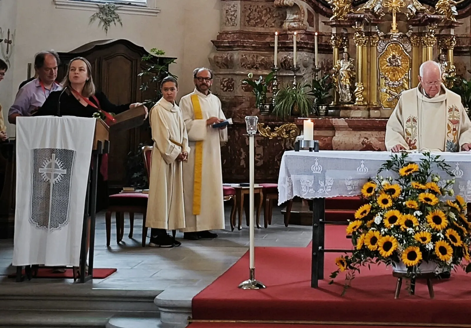 Zur Musik des Komponisten J.C.F. Fischer, der nicht[nbsp] zu den bekannten Musikern des Barock gehört, bekamen die Besucher schon zu Beginn des Patroziniums ein Blumentöpfchen mit feinen kleinen Blümchen vom Kinderkirche-Team. Der Kirchenchor Goldach und das Kammerorchester Goldach brachten eine schöne Fischer-Messe zur Aufführung und zeigten damit, dass ihr Stil – ganz in der Tradition des Hochbarock – betörend und erhebend sein kann. Dazu gab es auch berührende Lieder für das Volk. Die Predigt stand thematisch nahe an der Auferstehungs-Zeugin Maria Magdalena und wagte den gelungenen Vergleich mit der wiederauferstehenden Kirche Notre Dame von Paris. Die Apéro-Überraschung mit Salzigem und Süssem rundete das sommerlich-fröhliche Fest in Untereggen ab.